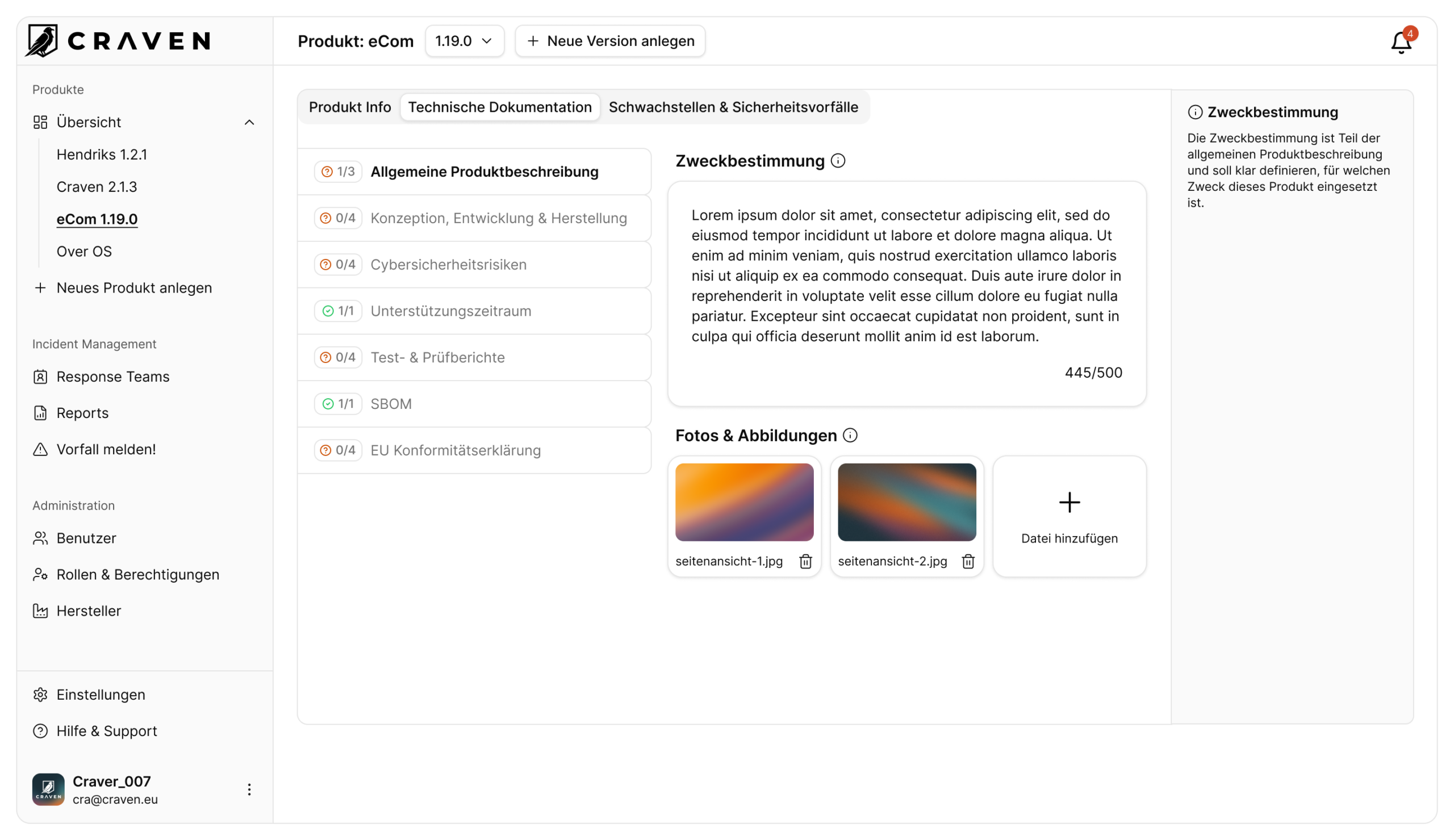 Vom Gesetzestext zur einfachen Übersicht. CRAVEN bündelt alle nötigen Werkzeuge, um den Anforderungen des CRA Folge zu leisten.